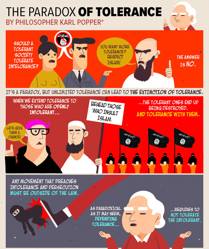 [The paradox of tolerance] is spammed by every Redditor that bootlicks censorship without question without really comprehending the point: If you want maximum tolerance, you specifically prune out what would un-tolerate (that is, actually jeopardize) the maximum number of different ideologies.